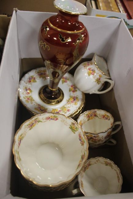 A SMALL BOX OF CERAMICS INCLUDING A VASE