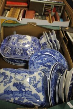 A TRAY OF BLUE & WHITE CHINA TO INCLUDE WEDGWOOD A/F (TRAY NOT INCLUDED) Various pieces are chipped and cracked