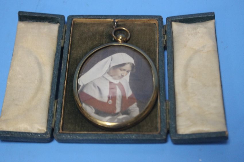 A MINIATURE TINTED PHOTOGRAPH OF A WWI NURSE