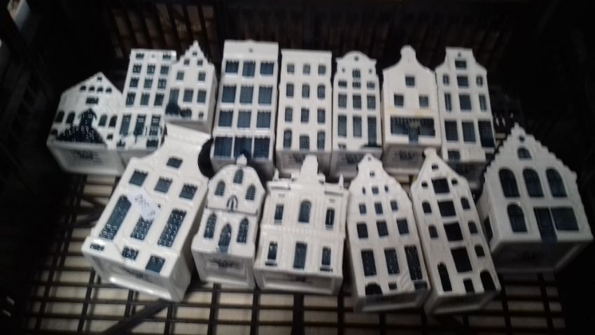 A TRAY CONTAINING FOURTEEN KLM BOLS DELFT PORCELAIN HOUSES