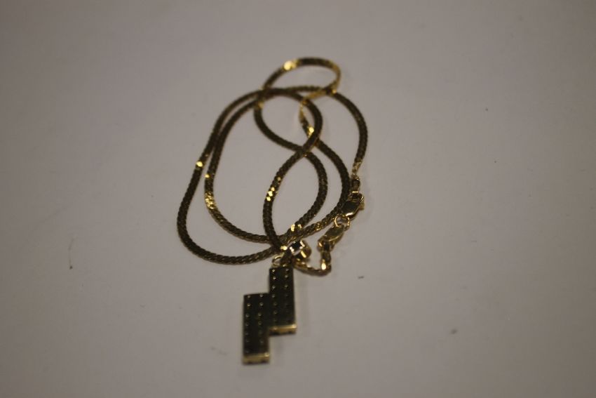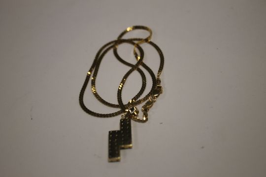 A YELLOW METAL PENDANT AND CHAIN (CHAIN MARKED 916 AND WEIGHS 4.9 g