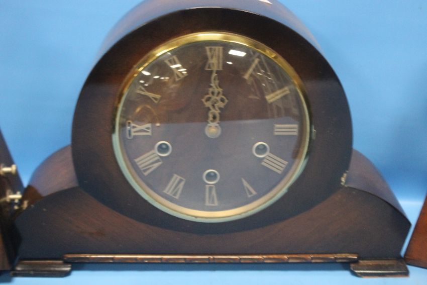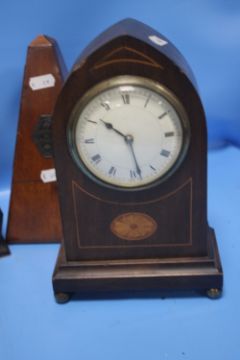 TWO MANTEL CLOCKS TOGETHER WITH TWO METRONOMES