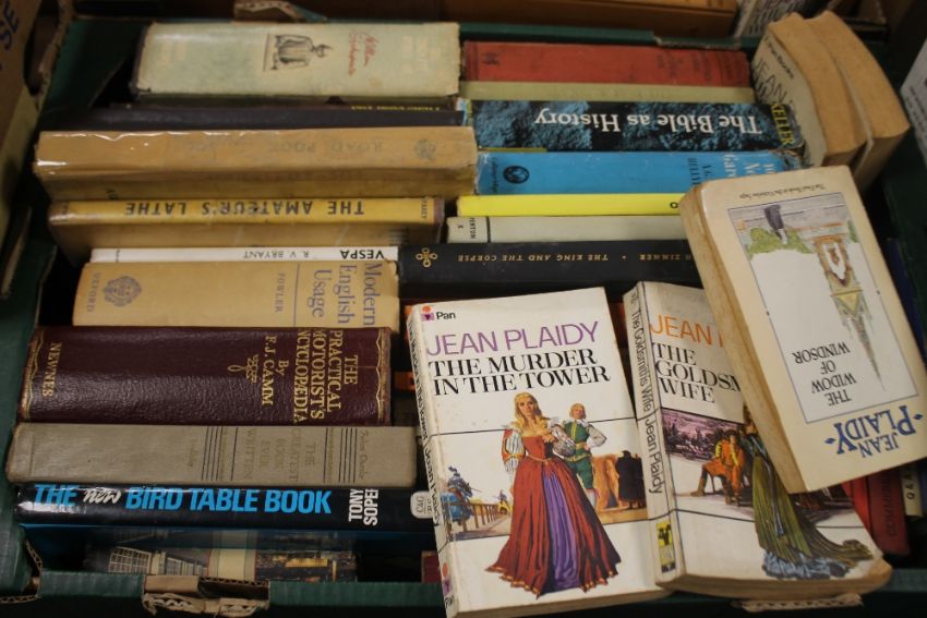 FOUR TRAYS OF MISCELLANEOUS BOOKS (TRAYS NOT INCLUDED)