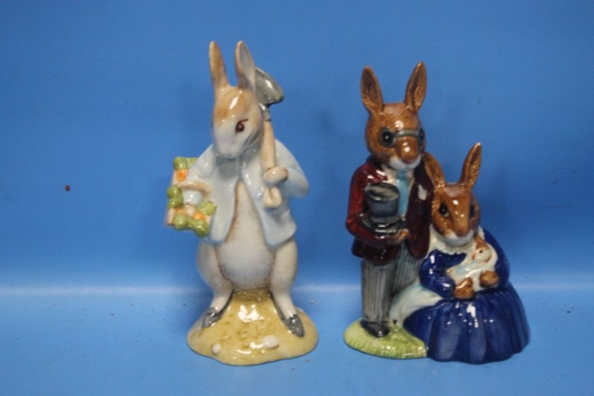 A ROYAL DOULTON BUNNYKINS 'FAMILY PHOTOGRAPH' TOGETHER WITH A BESWICK 'PETER RABBIT GARDENING' (2)
