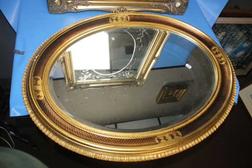 A RECTANGULAR MIRROR 90 X 64 CM TOGETHER WITH AN OVAL MIRROR APPROX. 86 X 66 CM (2)