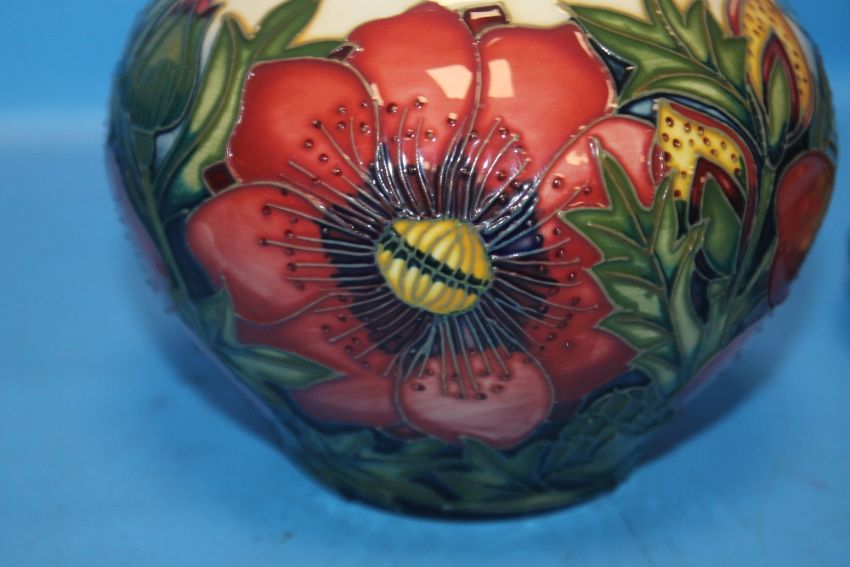 A MOORCROFT VASE TOGETHER WITH A MOORCROFT PIN DISH, 'PHEASANT'S EYE' PATTERN