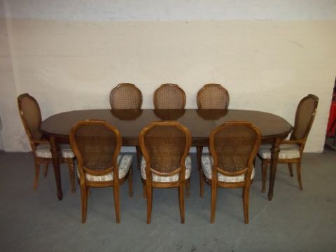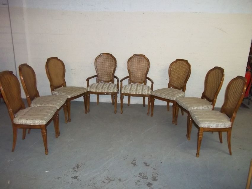 AN EXTENDING OAK DINING SET WITH EIGHT CHAIRS.