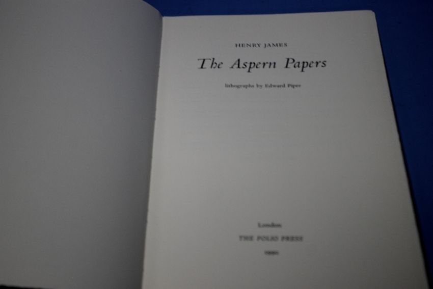FOLIO PRESS - HENRY JAMES - "THE ASPERN PAPERS", lithographs by Edward Piper, 1990, together with FOLIO PRESS 1989 - THOMAS DEKKER - "THE WONDERFUL YEAR 1603", introduction by A. L. Rowse, on Mohawk Superfine acid-free paper, bound by Hunter & Foulis Ltd. in Feincanvas cloth with Moiré silk sides and hand-marbled endpapers from Mitchell & Malik (2)