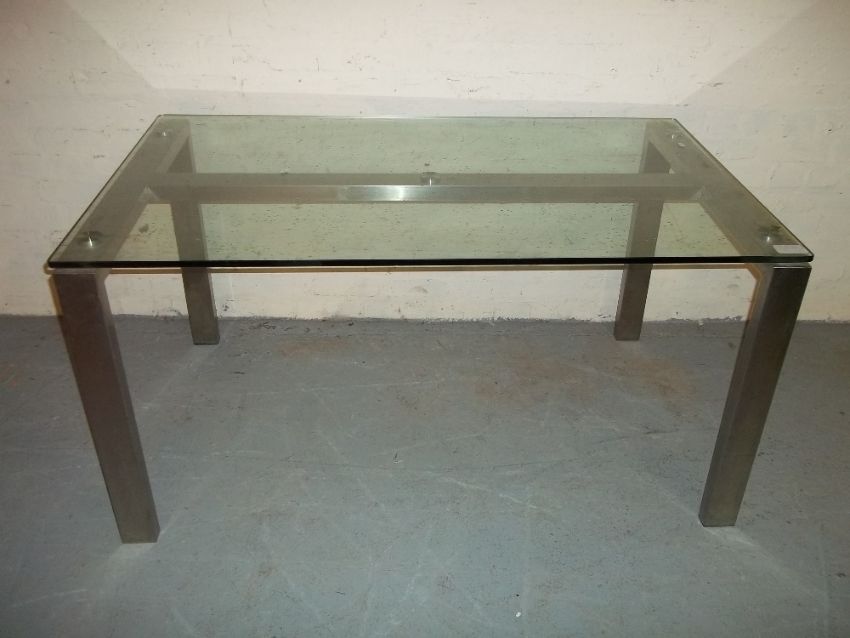 A GLASS TOPPED DINING TABLE