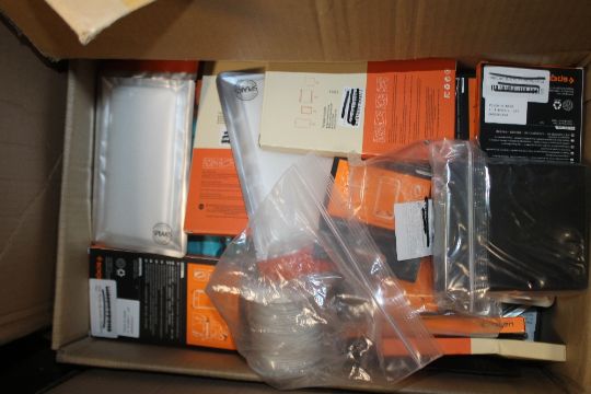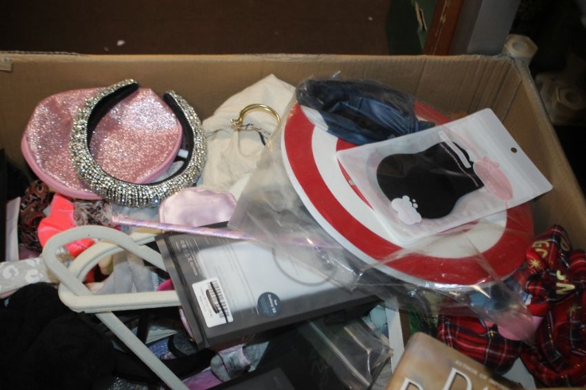 THREE BOXES OF MAINLY NEW ITEMS TO INCLUDE COAT HANGERS, HAIR ACCESSORIES, PHONE CASES ETC.