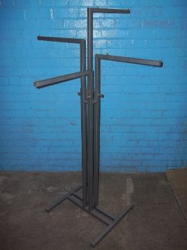 AN ADJUSTABLE CORNER CLOTHES DISPLAY RACK.