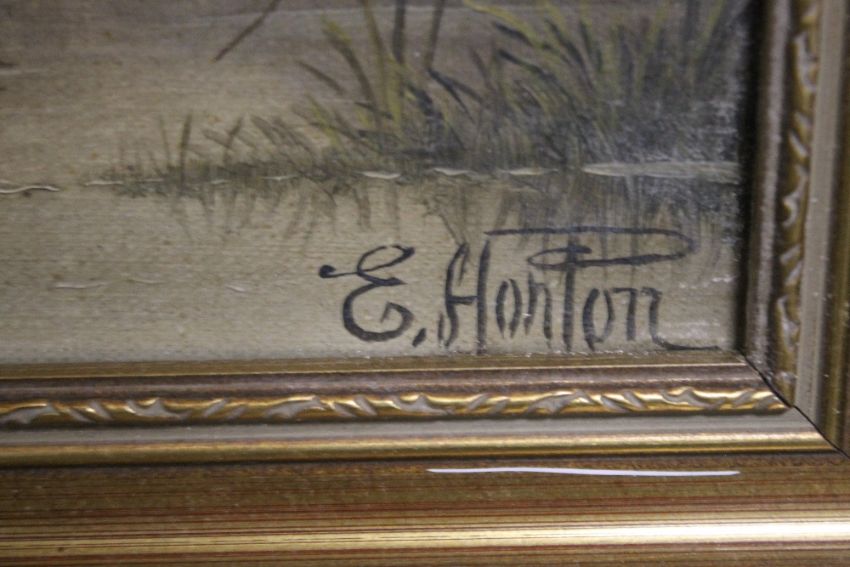 AN OIL ON CANVAS OF A RIVER SCENE SIGNED E. HONTON