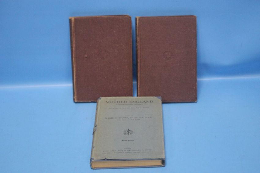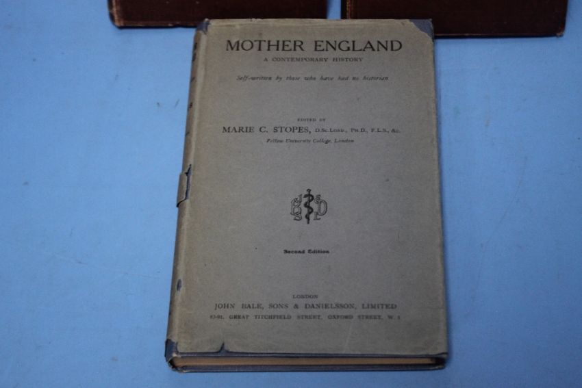 MARIE CARMICHAEL STOPES - "MARRIED LOVE A New Contribution to the Solution of Sex Difficulties", London: A. C. Fifield, 13 Clifford's Inn. E.C.4. 1918, first edition, MARIE CARMICHAEL STOPES - "MARRIED LOVE A New Contribution to the Solution of Sex Difficulties", London: A. C. Fifield, 13 Clifford's Inn. E.C.4. 1918, first edition with inscription "To my Darling Kath From her loving old Foster Mother. January 30th 1919" and MARIE C. STOPES - "MOTHER ENGLAND A Contemporary History", John Bale 1929, first edition with second edition dustjacket (3)