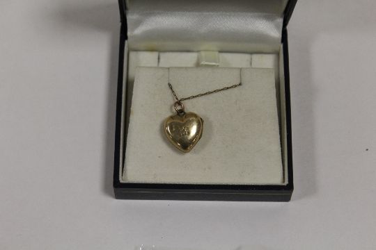 A LADIES 9CT GOLD BK&FT HEART SHAPED LOCKET ON CHAIN