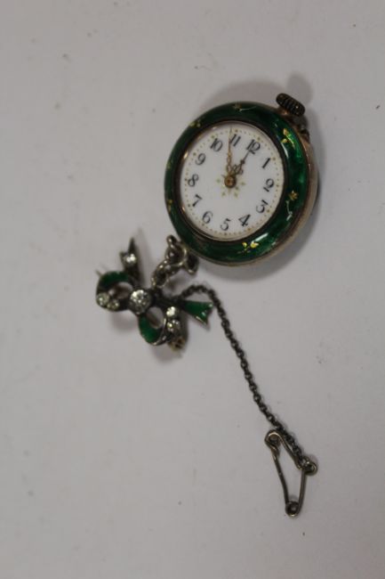 A VINTAGE LADIES SILVER AND ENAMEL PENDANT WATCH