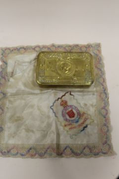 AN ARMY ORDINANCE SILK HANDKERCHIEF, TOGETHER WITH A 1914 CHRISTMAS TIN