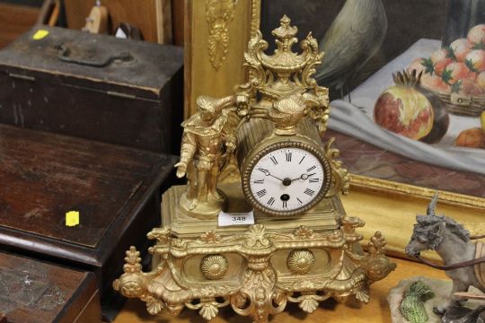A FRENCH GILT METAL FIGURAL MANTEL CLOCK