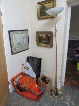 A FLYMO HOVER VAC, MODERN UPLIGHTER AND A QUANTITY OF SUNDRIES