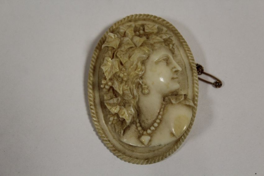 A LARGE 9CT GOLD MOUNTED CARVED CAMEO BROOCH