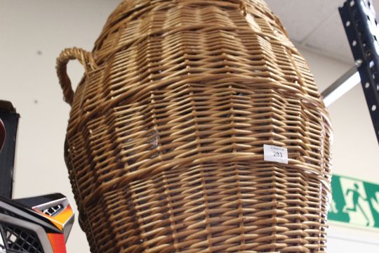 A TWIN HANDLED WICKER LAUNDRY BASKET