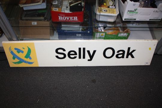 A VINTAGE SELLY OAK RAILWAY PLATFORM SIGN