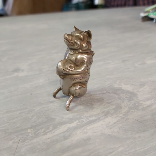 A NOVELTY FREESTANDING GO TO BE VESTA CASE IN THE FORM OF A PIG