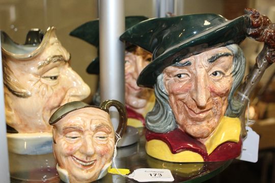 TWO ROYAL DOULTON CHARACTER JUGS - RIP VAN WINKLE, both large D6403, H 18 cm AND TWO ROYAL DOULTON CHARACTER JUGS - FARMER JOHN, consisting of medium and large, H 16.5 cm (4)