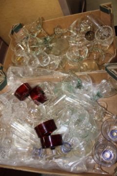 TWO TRAYS OF ASSORTED DRINKING GLASSES ETC.