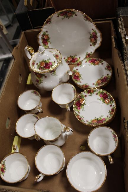 A ROYAL ALBERT OLD COUNTRY ROSES CHINA SIX PERSON TEA SET