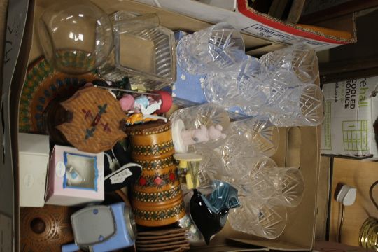 A TRAY OF CERAMICS AND CUT GLASS (TRAY NOT INCLUDED)