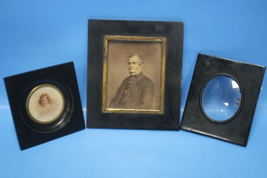 TWO VICTORIAN MINIATURE PORTRAITS AND A SIMILAR FRAME