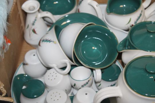 A TRAY OF DENBY GREEN WHEAT POTTERY (TRAY NOT INCLUDED)
