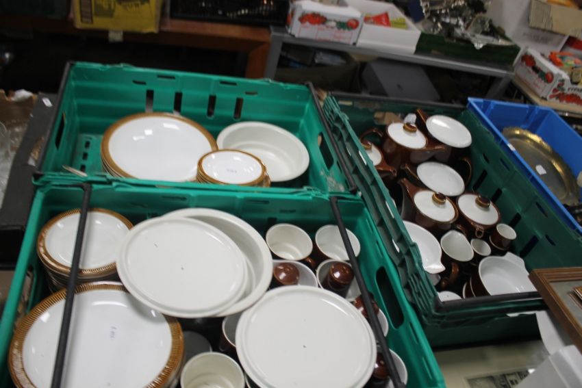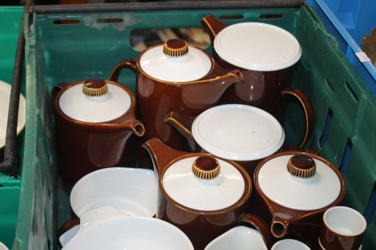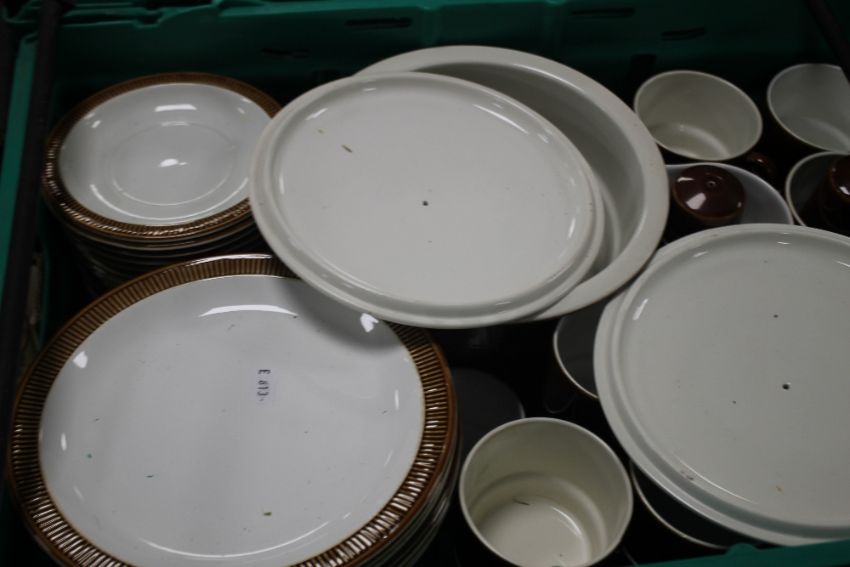 THREE TRAYS OF MAINLY POOLE POTTERY TEA & DINNERWARE (TRAYS NOT INCLUDED)