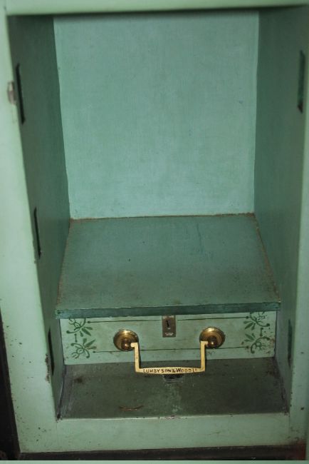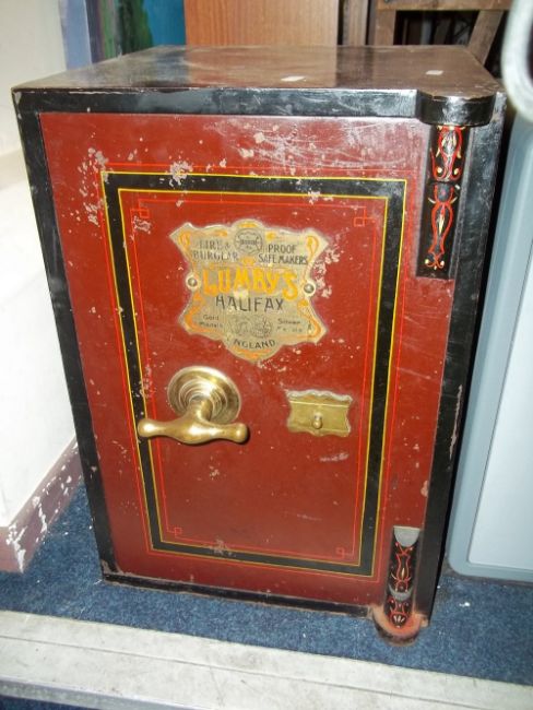 A VINTAGE FIREPROOF LUMBYS HALIFAX SAFE, H 56.5 cm, W 38 cm, D 41 cm There is a key to both the door and the drawer