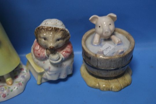 A ROYAL DOULTON DISNEY PRINCESS SNOW WHITE, A BUNNYKINS TUTANKHAMUN, BESWICK 'MRS TIGGY-WINKLE TAKES TEA' AND A BESWICK 'YOCK-YOCK IN THE TUB' (4)