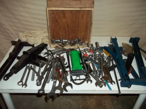 A SELECTION OF TOOLS CAR JACKS, AXLE STANDS AND CAR RAMPS.