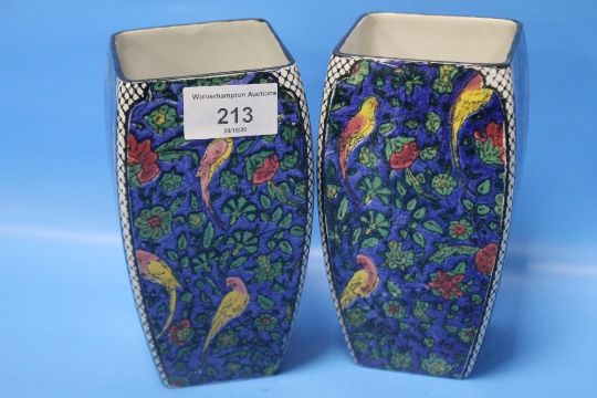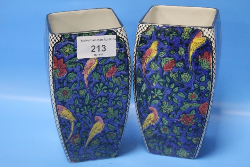 A PAIR OF ROYAL DOULTON VASES PERSIAN PARROT CHINTZ