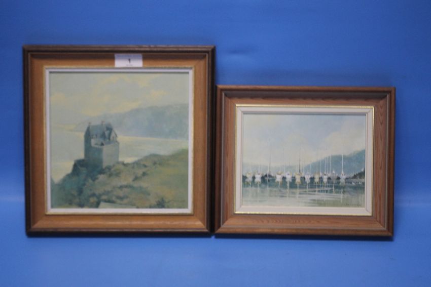 TWO FRAMED PAINTINGS BY HUGH T. LAMMIE 'CRAOBH HAVEN' & 'DUNTROON CASTLE' (2)