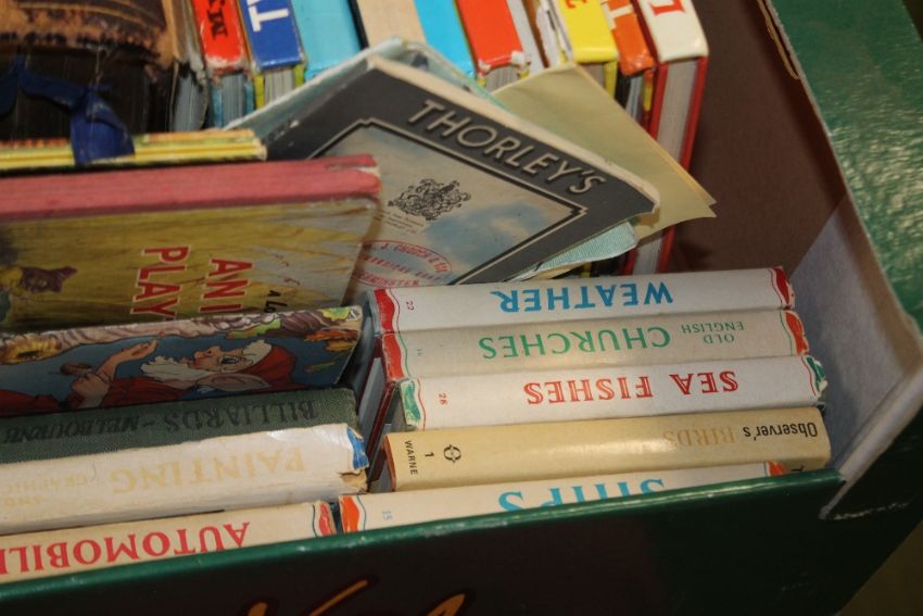 A BOX OF BOOKS TO INCLUDE OBSERVER'S BOOKS, ANNUALS ETC.