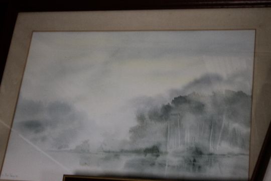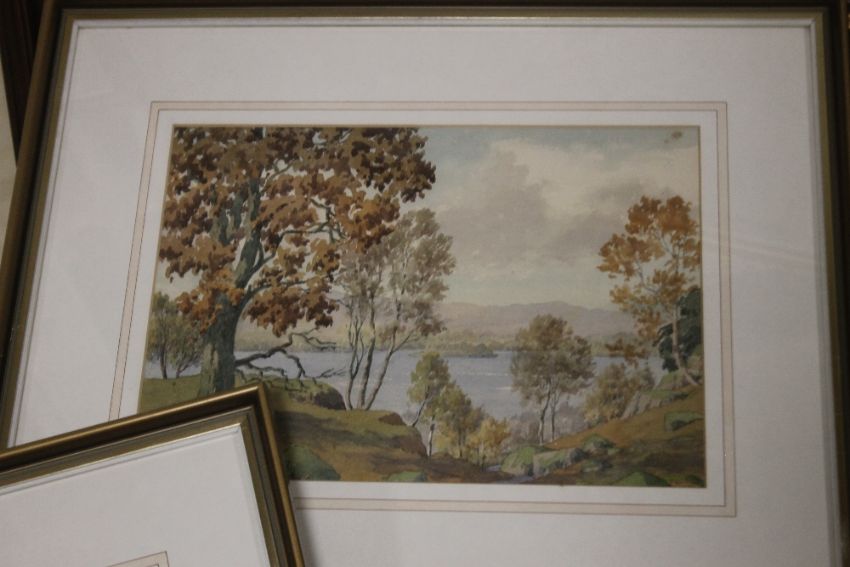 FIVE FRAMED WATERCOLOURS TO INCLUDE LAKESIDE SCENES