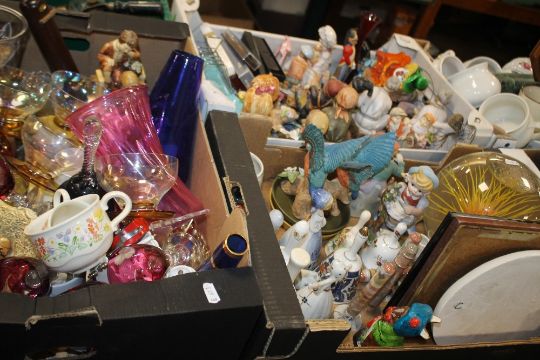 THREE TRAYS OF CERAMICS AND GLASSWARE (TRAYS NOT INCLUDED)
