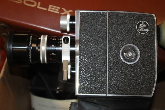 A QUANTITY OF VINTAGE BULBS, A BOLEX CINE CAMERA ETC.