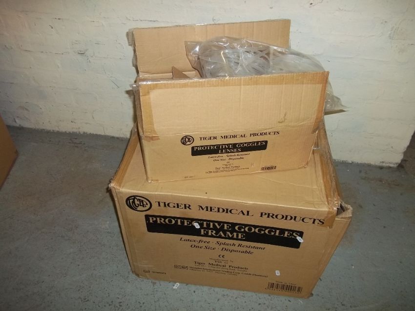 A BOX OF APPROX. 1500 ONE SIZE DISPOSABLE MEDICAL STYLE EYE PROTECTION GOGGLES