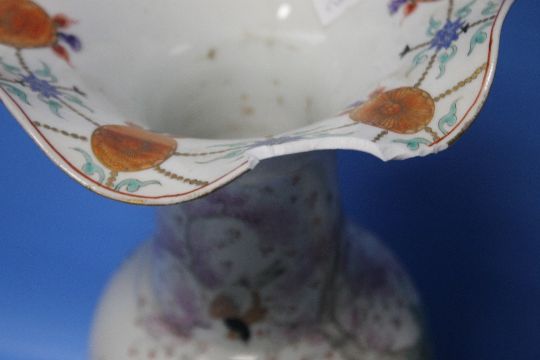 A PAIR OF ANTIQUE ORIENTAL PORCELAIN VASES, WITH ENAMEL DECORATION A/F (2)
