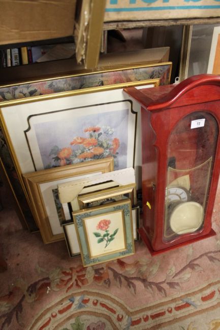 A COLLECTION OF MODERN PICTURES AND PRINTS TO INCLUDE A MODERN WALL CLOCK A/F