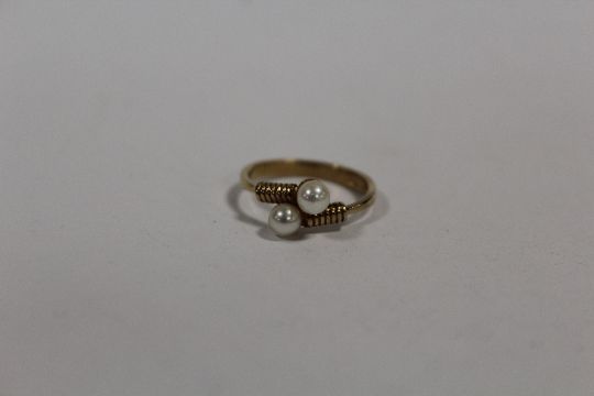 A HALLMARKED 9 CARAT GOLD TWIN PEARL SET DRESS RING