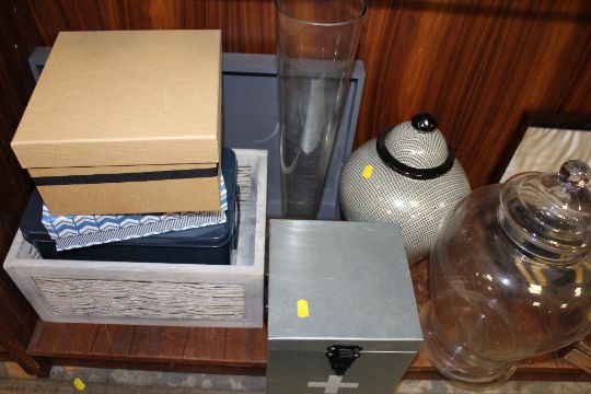 A QUANTITY OF MODERN STORAGE BOXES, MODERN LIDDED URNS ETC.