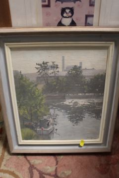 A FRAMED OIL ON CANVAS LAID ON BOARD DEPICTING A BOAT UPON A RIVER SIGNED IAN CRYER LOWER RIGHT