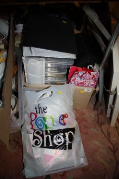 A BOX AND BAG OF ASSORTED CRAFTING ITEMS ETC.