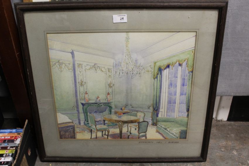 A FRAMED AND GLAZED WATERCOLOUR ENTITLED ARROWSMITH HALL BY C MUMFORD